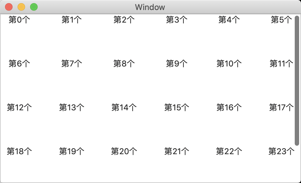 | // 替换viewDidLoad - (void)viewDidLoad { [super viewDidLoad]; NSCollectionView *collectionView = [[NSCollectionView alloc] initWithFrame:self.view.bounds]; NSCollectionViewFlowLayout *layout = [[NSCollectionViewFlowLayout alloc] init]; layout.minimumLineSpacing = 0; layout.minimumInteritemSpacing = 0; layout.itemSize = CGSizeMake(60, 60); collectionView.collectionViewLayout = layout; collectionView.dataSource = self; [collectionView registerClass:[CollectionViewItem class] forItemWithIdentifier:@"item"]; NSClipView *clip = [[NSClipView alloc] initWithFrame:self.view.bounds]; clip.documentView = collectionView; NSScrollView *scrollView = [[NSScrollView alloc] initWithFrame:self.view.bounds]; scrollView.contentView = clip; [self.view addSubview:scrollView]; }